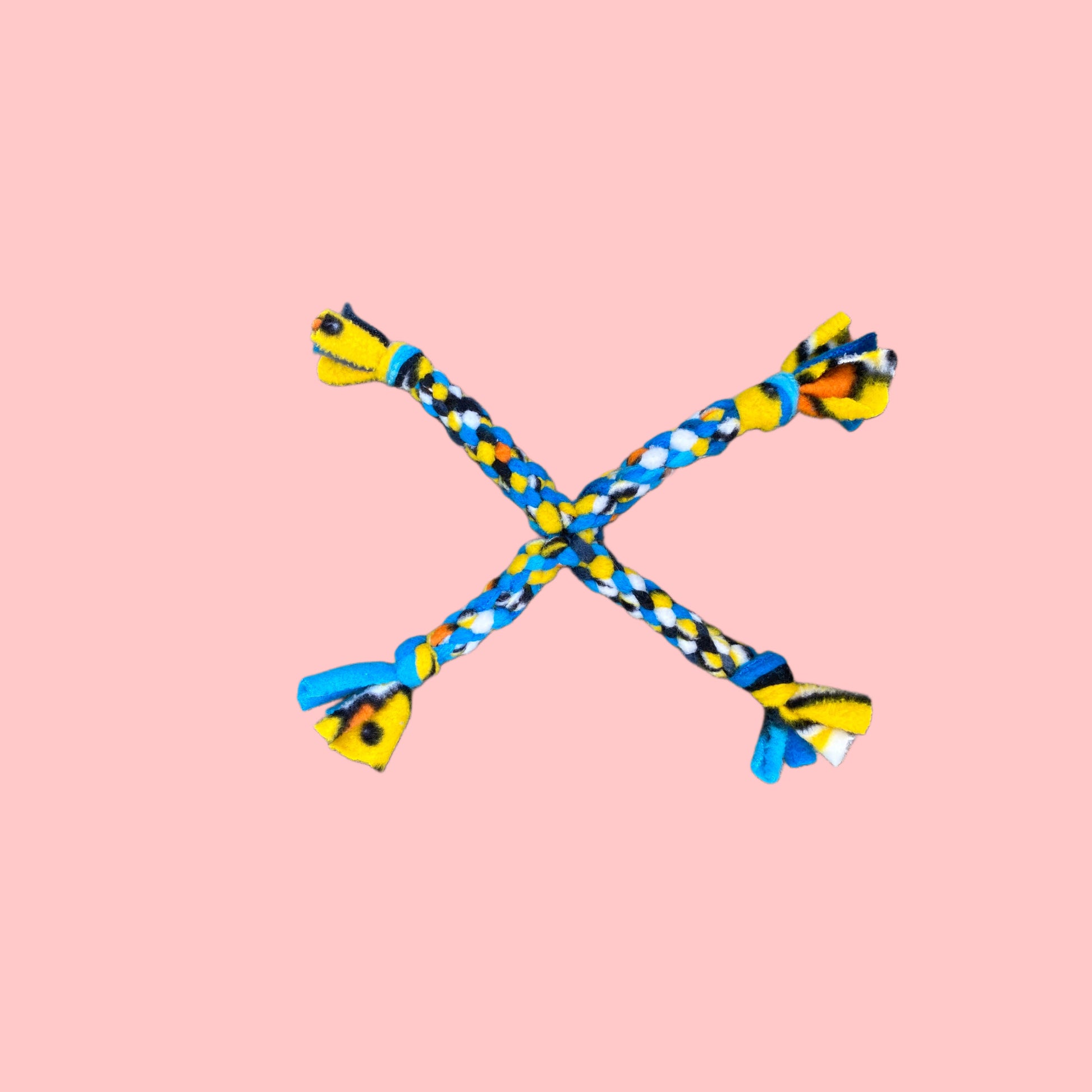 A range of tugs for smaller breeds who usually get left out, we’ve created the same designs we make for medium to large dogs but made it more manageable for our lap friends! Recycled fleece braided into dog tug toys.